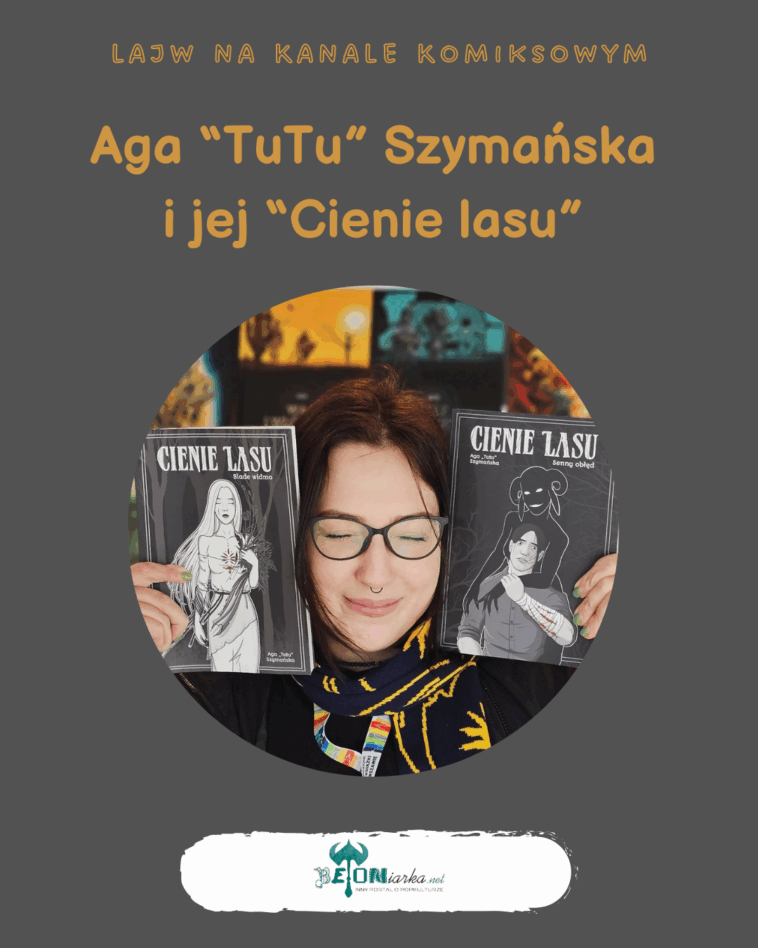 28 października o godz. 19.00 zapraszamy na Kanał Komiksowy Betoniarki na spotkanie na żywo z Agą „Tutu” Szymańską, autorką serii komiksowej Cienie Lasu, której drugi tom Senny obłęd niedawno pojawił się na rynku. Rozmowę poprowadzi Marta Kostecka.
