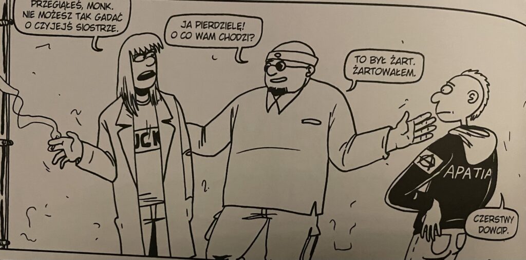 Na łamach komiksu mamy obszerny przekrój subkultur, które były tak widoczne na polskich ulicach ponad dwie dekady temu. Mamy tu m.in. metalowców, punków, i grupki „koksiarzy” próbujących rządzić okolicą.