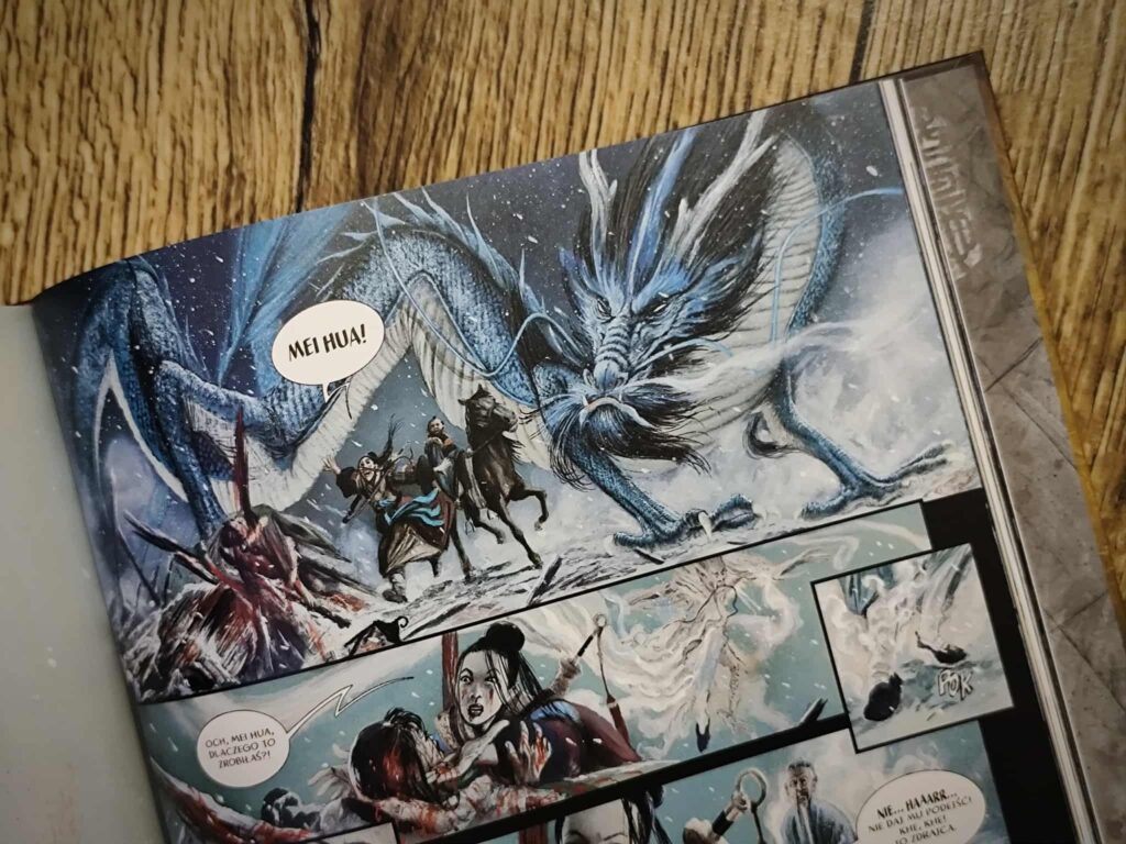 Warstwa wizualna Civiello to jeden z największych atutów komiksu. Kadry są malarskie, pełne barw i orientalnych detali, a smoki przedstawiono z imponującą dynamiką i elegancją, bardziej jako istoty duchowe niż typowe potwory fantasy. Ilustracje budują atmosferę tajemnicy i podkreślają emocjonalny ciężar opowieści.
