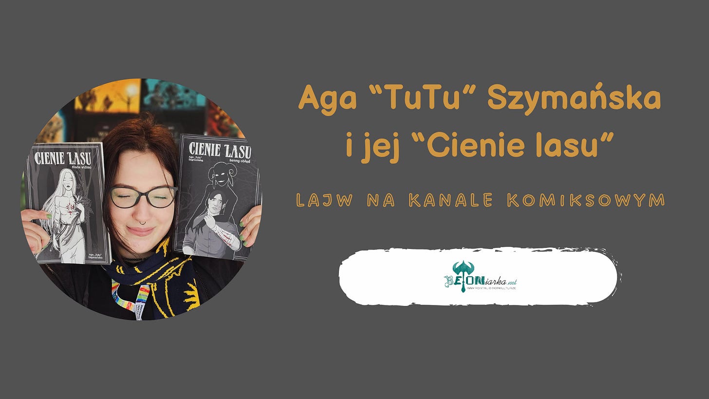 28 października (wtorek) o godz. 19.00 zapraszam na Kanał Komiksowy portalu betoniarka.net na lajwa z Agą „Tutu” Szymańską, z którą porozmawiam o drugim tomie Cieni Lasu. Link do Kanału: https://www.youtube.com/@betoniarkanet