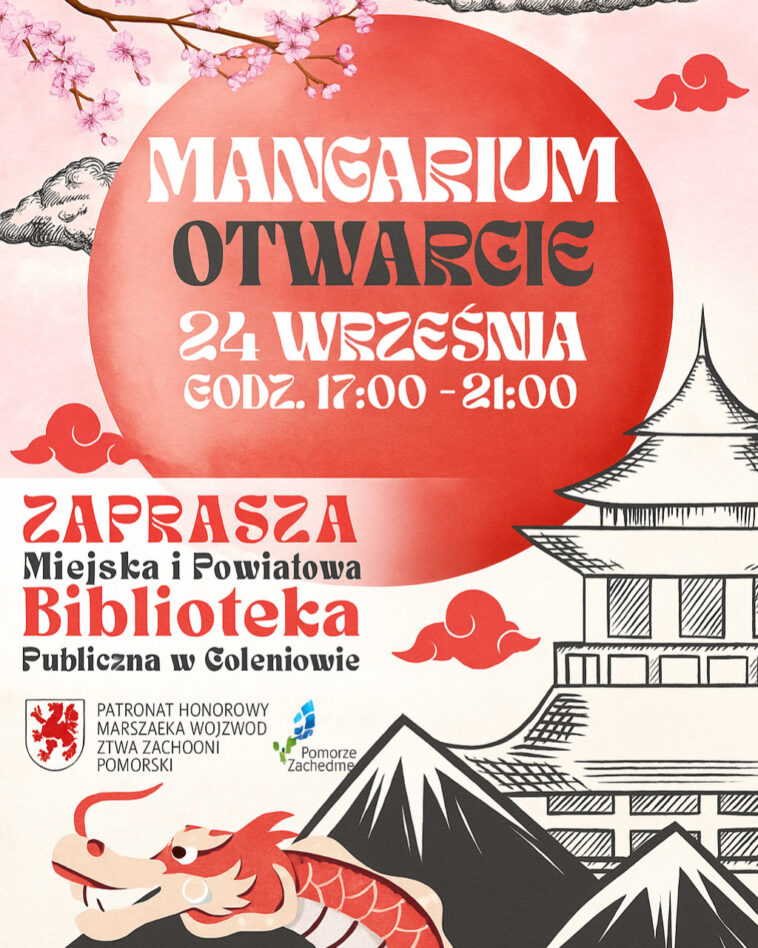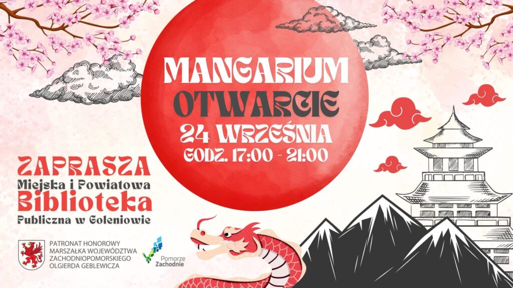 Już 24 września w goleniowskiej bibliotece startuje Mangarium – wyjątkowa przestrzeń poświęcona mandze i kulturze Japonii! To miejsce, które z czasem będzie się rozwijać i wzbogacać o nowe tytuły, inspiracje i możliwości odkrywania fascynującego świata Kraju Kwitnącej Wiśni.