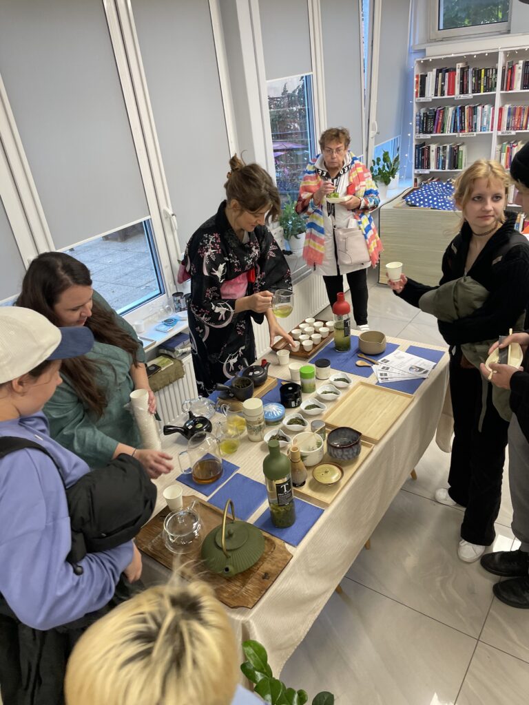 Wyjątkową atmosferę dopełnił tradycyjny rytuał parzenia herbaty, który wprowadził uczestników w spokojny, pełen skupienia świat japońskiej kultury.