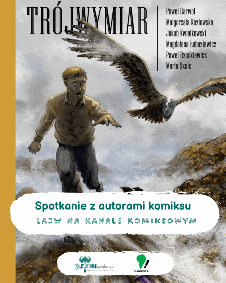 23 września o godz. 18.00 zapraszamy na Kanał Komiksowy Betoniarki na kolejnego lajwa z autorkami i autorami komiksowymi. Tym razem Marta Kostecka gościć będzie osoby odpowiedzialne za stworzenie komiksu Trójwymiar z wydawnictwa Mandioca.